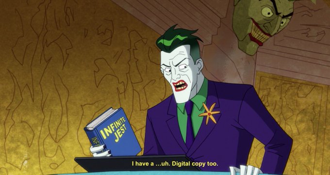 Image The DC Harley Quinn cartoon’s got lit jokes May 6, 2020May 6, 2020 by Anne ©Warner Bros. If you don’t know, now you know. (Also, no shade to Infinite Jest. It didn’t do anything wrong.) Share this: Click to share on X (Opens in new window) X Click to share on Facebook (Opens in new window) Facebook Like Loading... Related
